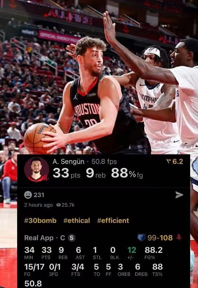 全场,申京一人独自摘下33分9板6助攻